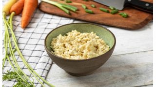 טופו מגורד מתובל במיונז טבעוני ביתי בסגנון סלט ביצים