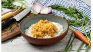 תבשיל טבעוני מעדשים כתומות בסגנון דאל הודי עם תבלינים חמים וארומטיים. מגיע בקופסא של ליטר