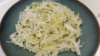 כרוב לבן בתיבול עדין של מלח ולימון - טבעוני לגמרי, ללא מוצרים מן החיי.