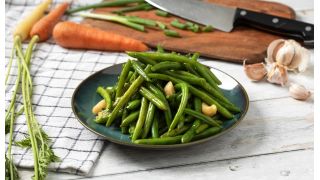 שעועית ירוקה מוקפצת עם שום ושמן שומשום - טבעונית לגמרי וללא רכיבים מן החיי.